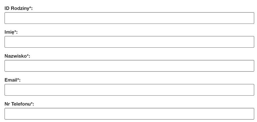 W formularzu należy wpisać kod ID rodziny, wraz z imieniem, nazwiskiem i adresem e-mail, podanym przez Państwa przy rejestracji do szkoły. Kod ID rodziny otrzymają Państwo wraz z potwierdzeniem miejsca w szkole. W razie problemów z jego otrzymaniem, prosimy o kontakt z administratorem Szkoły.